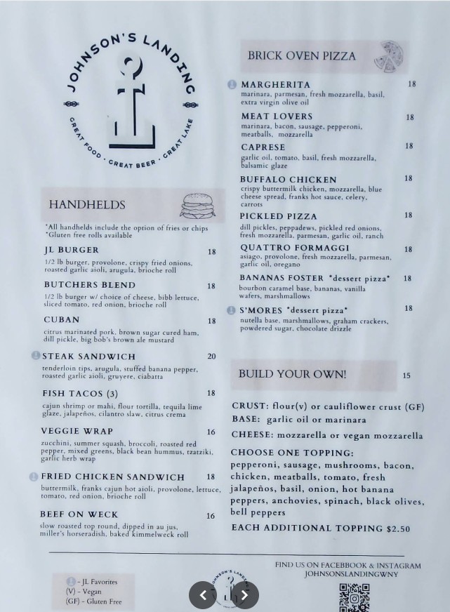Looking for the latest Johnson’s Landing Restaurant menu in Hamburg, NY? Located on Lake Shore Road with beautiful waterfront views, Johnson’s Landing offers a modern American dining experience featuring fresh seafood, handcrafted entrees, signature cocktails, and seasonal specialties. Whether you’re planning a casual lunch, sunset dinner, or weekend gathering, this lakefront restaurant combines upscale comfort food with a relaxed atmosphere. Below, you’ll find menu highlights, pricing details, and everything you need to know before visiting Johnson’s Landing.